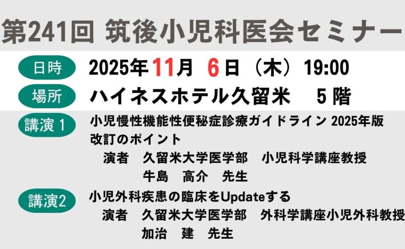 第241回筑後小児科医会セミナー 2025.10.13 会員専用, 筑後小児医会より, 筑後小児科医会セミナー 第241回筑後小児科医会_案内状ダウンロード 会員専用, 筑後小児医会より, 筑後小児科医会セミナー 第240回筑後小児科医会セミナー前の記事 第5回かかりつけ医のための子どもの発達とねむりを考えるオンラインセミナー次の記事